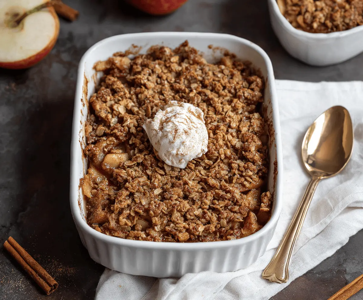 Yes, you can prep it a day in advance! Assemble the apple filling and topping, then store them separately in the fridge. When you’re ready to bake, layer them in the baking dish and follow the baking instructions. Just keep in mind that baking time may be slightly longer if the mixture is cold.