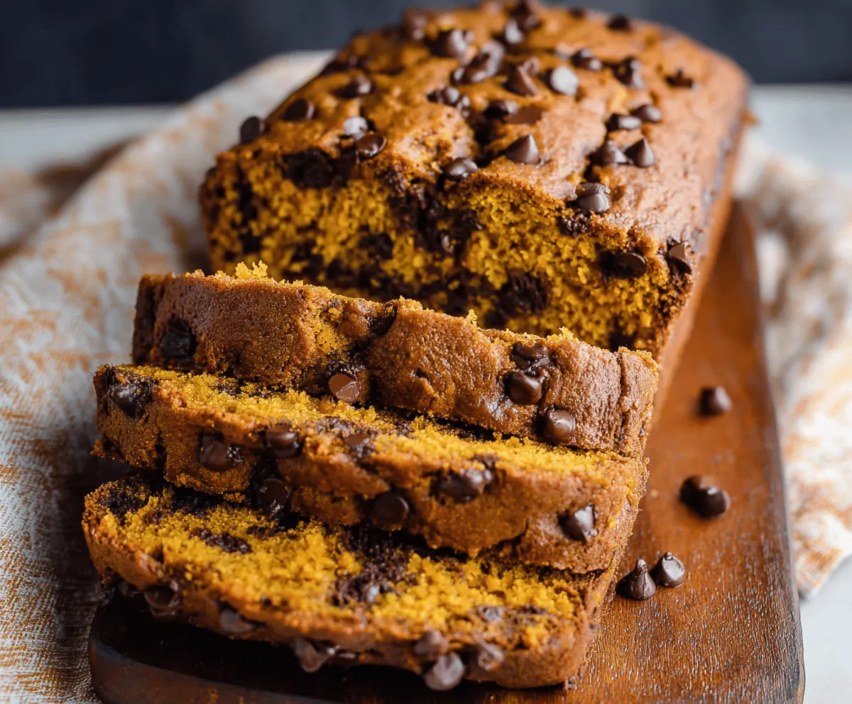 After it has cooled, slice your delicious pumpkin chocolate chip bread. It’s perfect for breakfast, an afternoon snack, or even dessert. Enjoy every moist and flavorful bite!